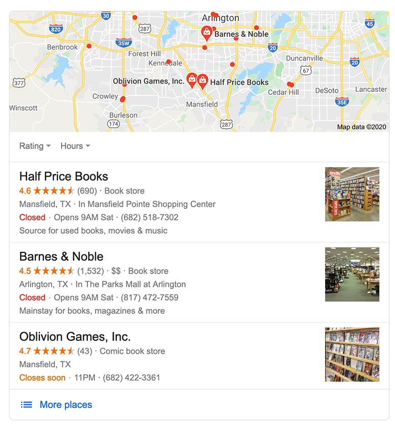 Plus, these days with Local SEO and Google, there are a lot of benefits. First, if someone searches for something locally, they’ll usually get a list of three businesses nearby, known as the three-pack. And getting listed there greatly increases your odds that they look up your business.