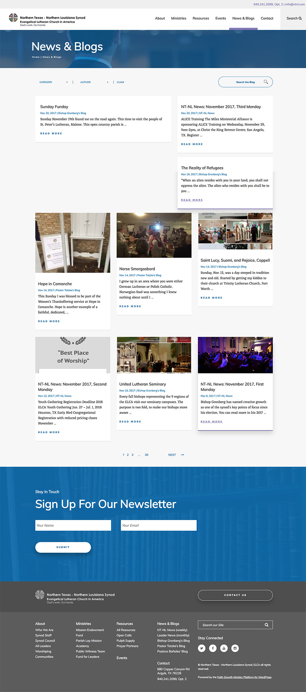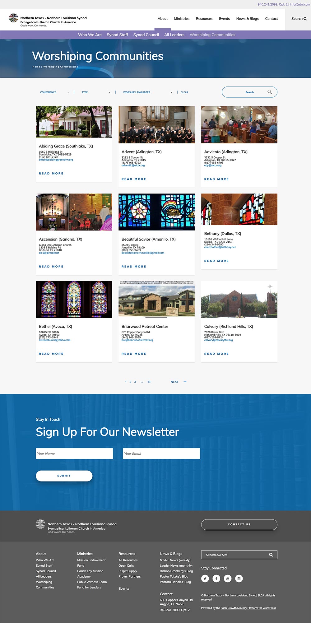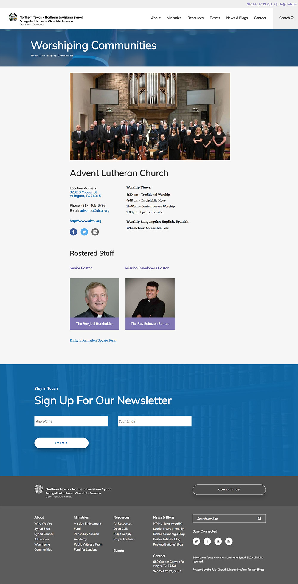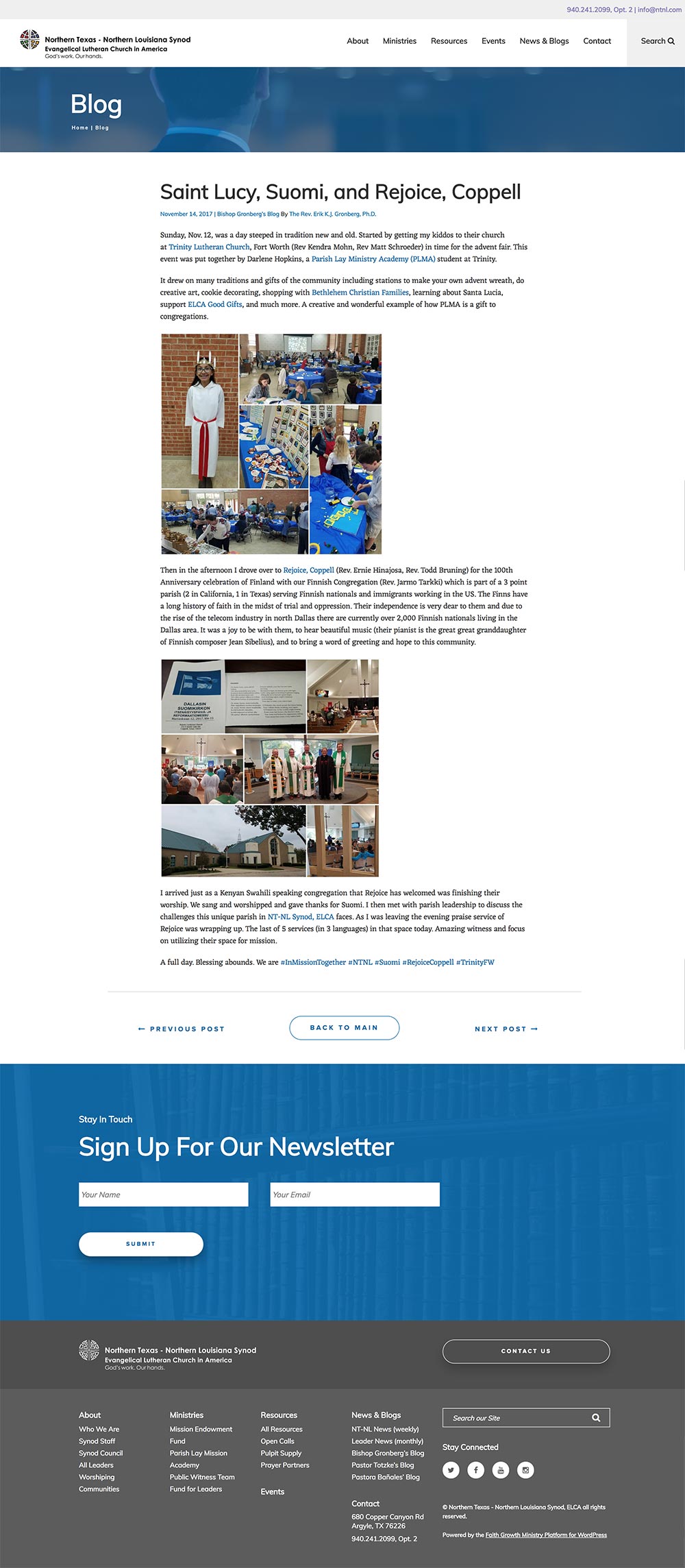 I also wrote a case study for Faith Growth on the work that we did for the synod. Work on this case study included going through documentation between Faith Growth and NTNL and interviewing Christopher Harris, owner of Faith Growth, and several NTNL staff members. Through this, I was able to write a study that clearly showed how we, at Faith Growth, were able to create a website that showcased their needs.