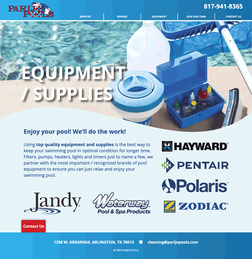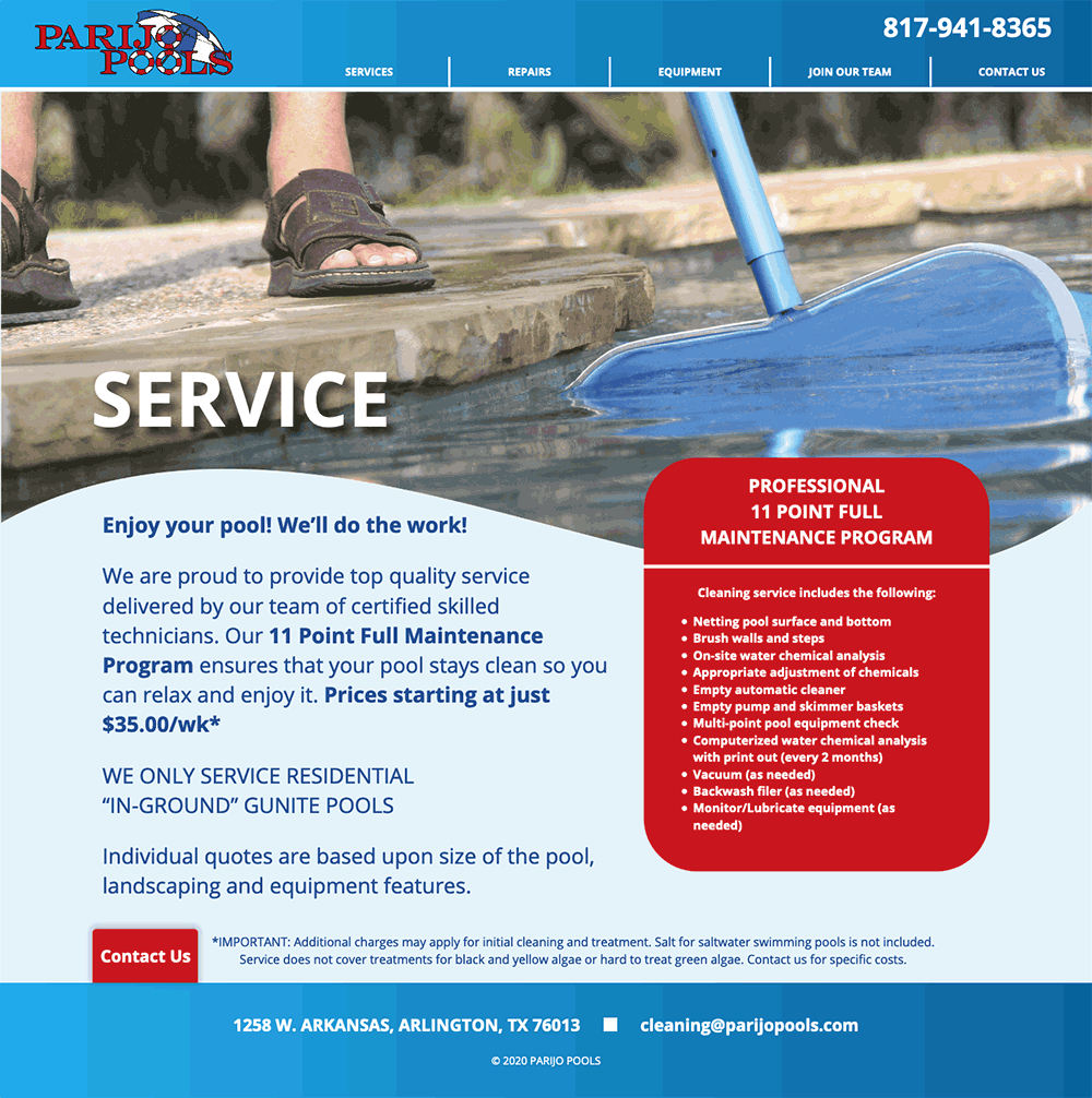 Parijo Pools needed a website. With the way people find solutions on the internet, the Arlington company needed an online presence for people to find them.